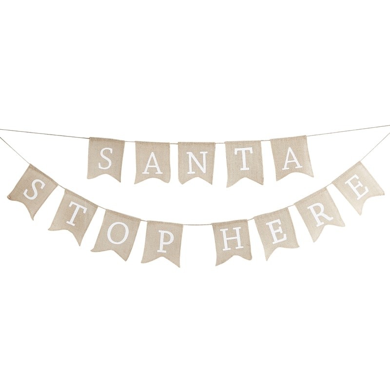 Hessian Santa Stop Here Bunting - Burlap - Rustic Christmas