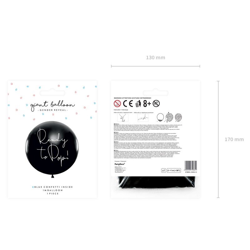 Ready to Pop Giant Gender Reveal Confetti Balloon - Baby Boy
