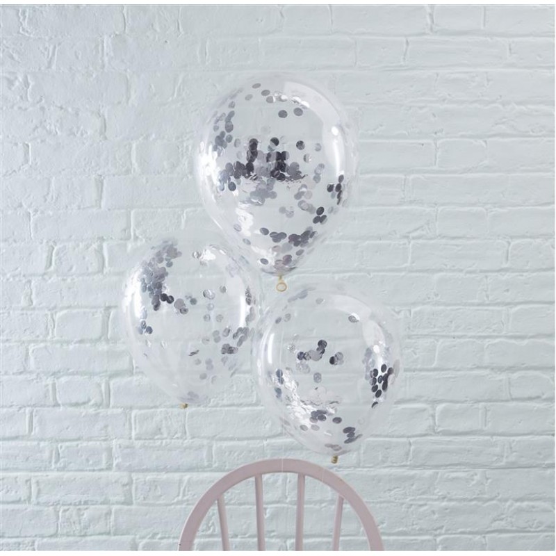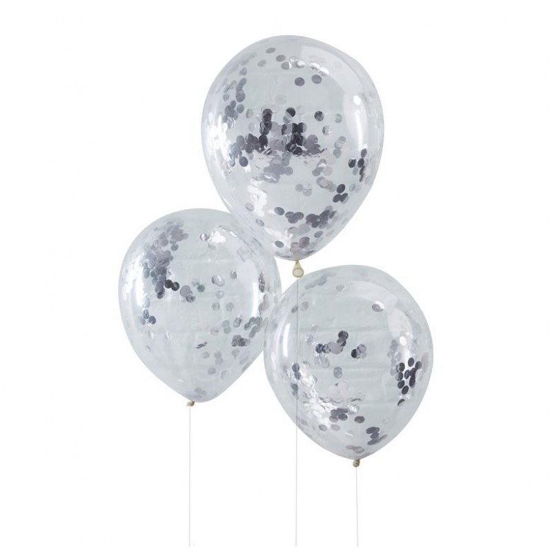 Silver Confetti Filled Balloons - Pick And Mix