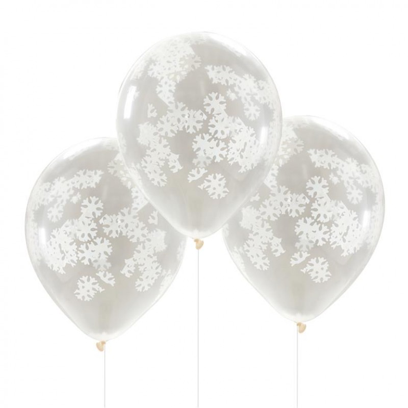 Clear balloons are filled with crisp white snowflake shaped confetti pieces! Hang around your home to create the a chic Christmas feeling!