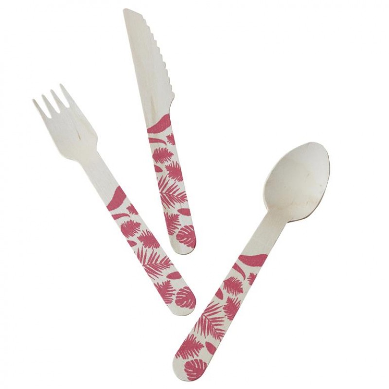 Tropical Wooden Cutlery - Flamingo Fun